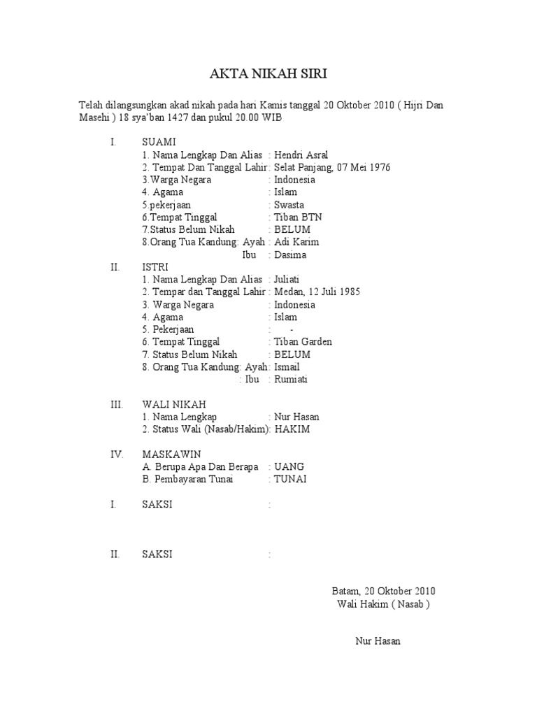 Contoh Surat Nikah Siri Yang Sudah Jadi Id Lif Co Id from i.pinimg.com Maybe you would like to learn more about one of these? We did not find results for: Contoh surat perjanjian cerai nikah siri. Check spelling or type a new query.